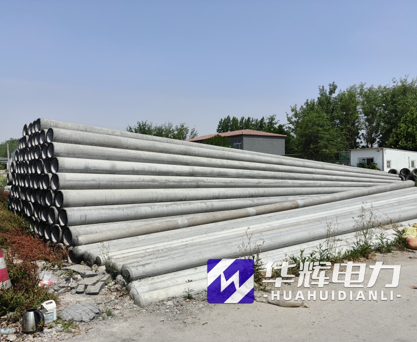 8米温江水泥电线杆通常采用钢筋混凝土离心成型工艺,杆体呈锥形结构,梢径150mm-190mm,根径230mm-270mm,壁厚40mm-50mm。根据标准GB/T4623-2014,产品混凝土强度等级不低于C40,主筋采用HRB400级钢筋,配筋量根据抗裂弯矩要求设计,标准抗裂弯矩可达12-18kN·m,破坏弯矩不小于24kN·m。杆体重量约0.5-0.8吨,运输安装便捷,适合人工或小型机械施工。